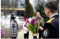 Так 8 марта наши курсанты поздравляли женщин столицы в парке «Северное Тушино». В рамках акции «Для милых дам» ребята дарили цветы посетительницам парка.