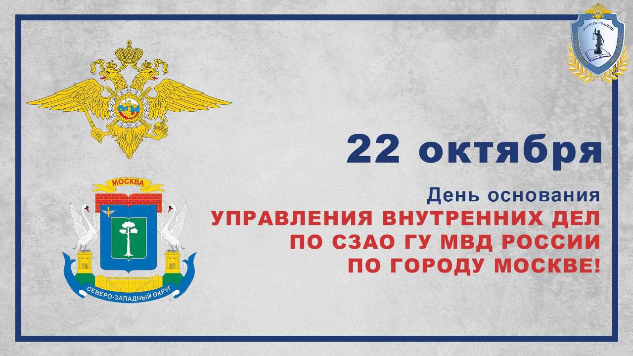 Колледж полиции поздравляет всех сотрудников, работников и ветеранов УВД СЗАО с Днем основания Управления внутренних дел по СЗАО ГУ МВД России по г. Москве!