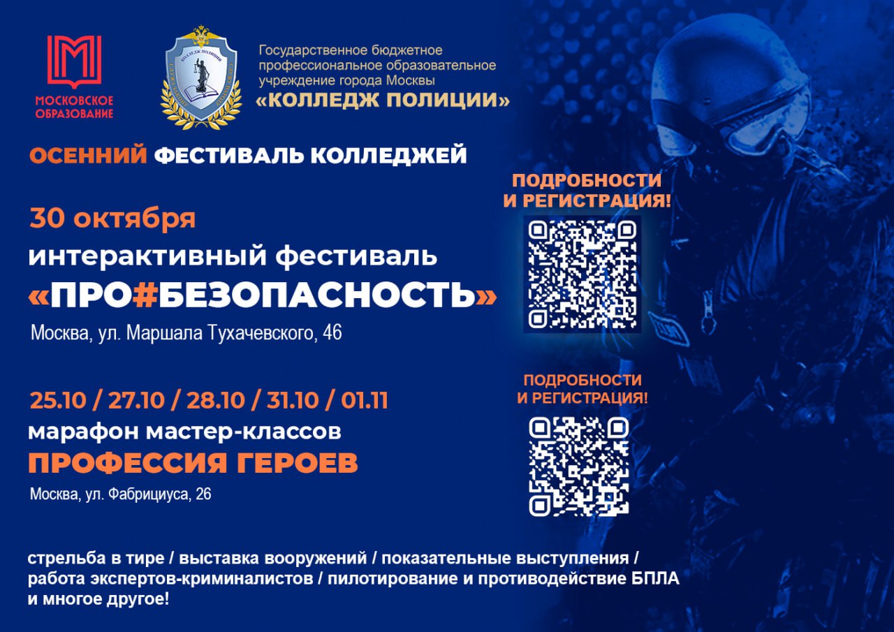 С 25 октября в Москве стартует Осенний фестиваль колледжей! В течение недели вы сможете узнать о профессиях и обучении учреждениях столичной системы СПО! Для столичных школьников подготовили более 200 мероприятий, посвященных современным профессиям и специальностям в самых разных сферах!