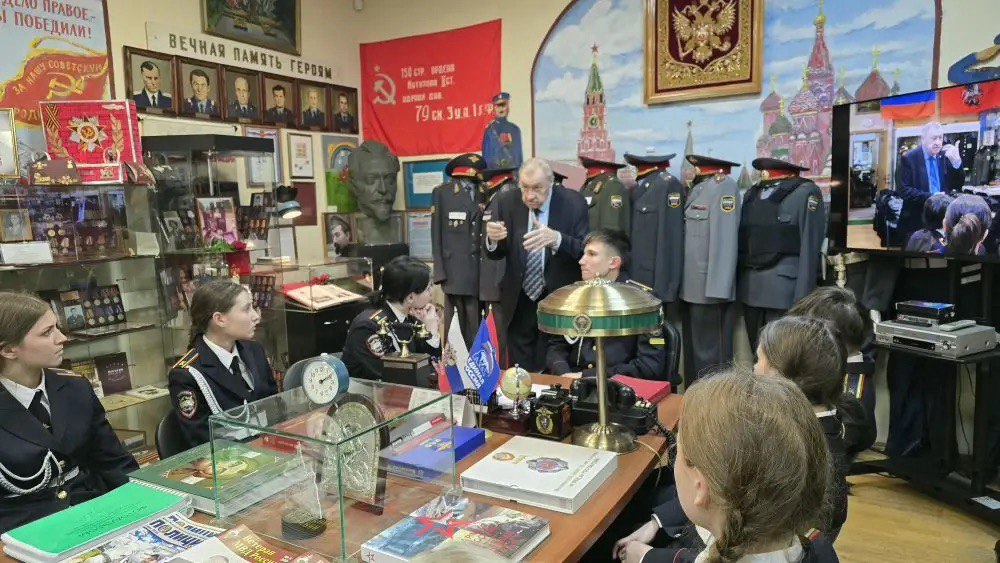 Председатель Совета ветеранов УВД по СЗАО, полковник внутренней службы в отставке Владимир Иванович Рубан рассказал ребятам историю Главного управления МВД. Председатель ветеранской организации УМВД по району Хорошево - Мневники подполковник внутренней службы в отставке Наталья Владимировна Уварова рассказала о создании экспозиции музея и познакомила курсантов с историей формы сотрудников милиции и полиции. Председатель Общественного совета при УВД по СЗАО генерал-лейтенант милиции в отставке Виктор Андреевич Швидкин познакомил ребят с историей Колледжа полиции, а также рассказал о сотрудниках, погибших при выполнении своего долга по охране граждан столицы.