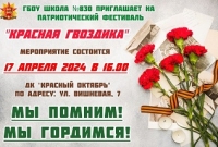 17 апреля в ДК " Красный Октябрь" состоялся традиционный фестиваль школы 830 " Красная гвоздика" , посвященный дню Победы, на который были приглашены ветераны МРСВПТ 8 СЗАО. Эмоции не передаваемы. Насколько всё было трогательно, эмоционально и в тему. Какие же талантливые у нас дети! Учителя ! Спасибо большое школе 830 за приглашение, особенно председателю их ветеранской первички Козловой Н.Г. Вот так и идёт воспитание юных патриотов.